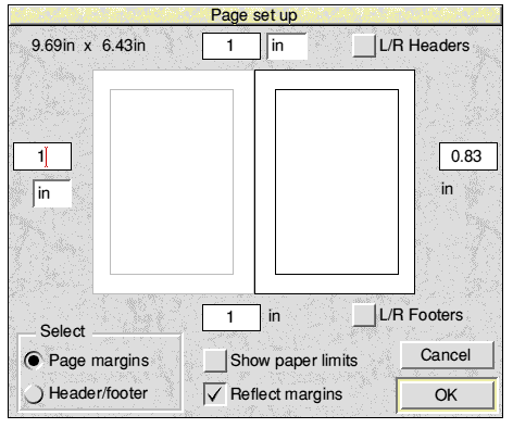 Choose Page setup... to display a dialogue box where you can