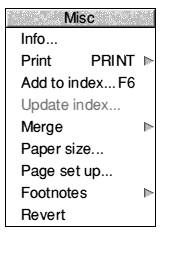 previous version saved. The Misc menu leads to submenus and dialogues