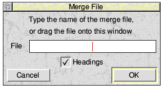 The File command leads to the Merge File dialogue where