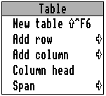 The Table (Ctrl-Shift-F6)command starts a new table. If