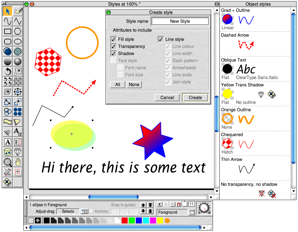 - Choose an attribute group (e.g., Line styles) or individual attributes (e.g., Shadow)