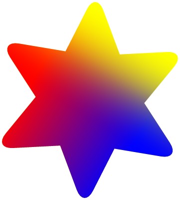 The 3-colour fill of the star was created by putting a copy of the star with a graduated fill from blue to red and graduated transparency on top of the original with a solid yellow fill.