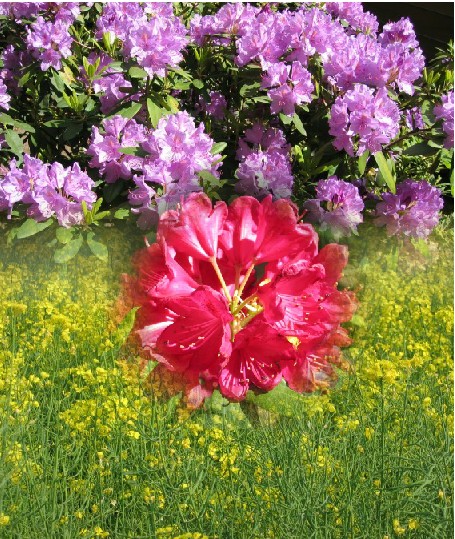This example shows three blended bitmaps. The two bitmaps in the background were blended using linear transparency, the red blossom uses radial transparency (with a profile offset). You could achieve the same in a photo retouching package but in ArtWorks, the three bitmaps are still independent objects that you can move around individually.