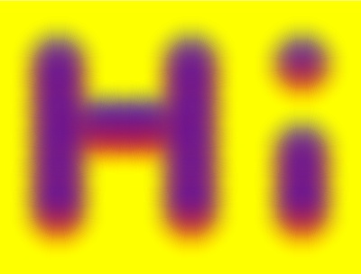 The text "Hi" is simply made of 19 identical overlapping circles, each having a graduated fill and radial transparency. Even though the design looks more like something you would normally create using the airbrush tool in a photo retouching package, it is still fully vector based.